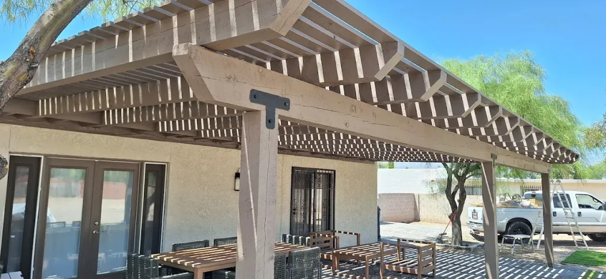 Create shade and outdoor comfort with custom ramadas and pergolas. Built using rustic wood, these structures provide the perfect space for relaxing, entertaining, or enhancing your backyard living area.
